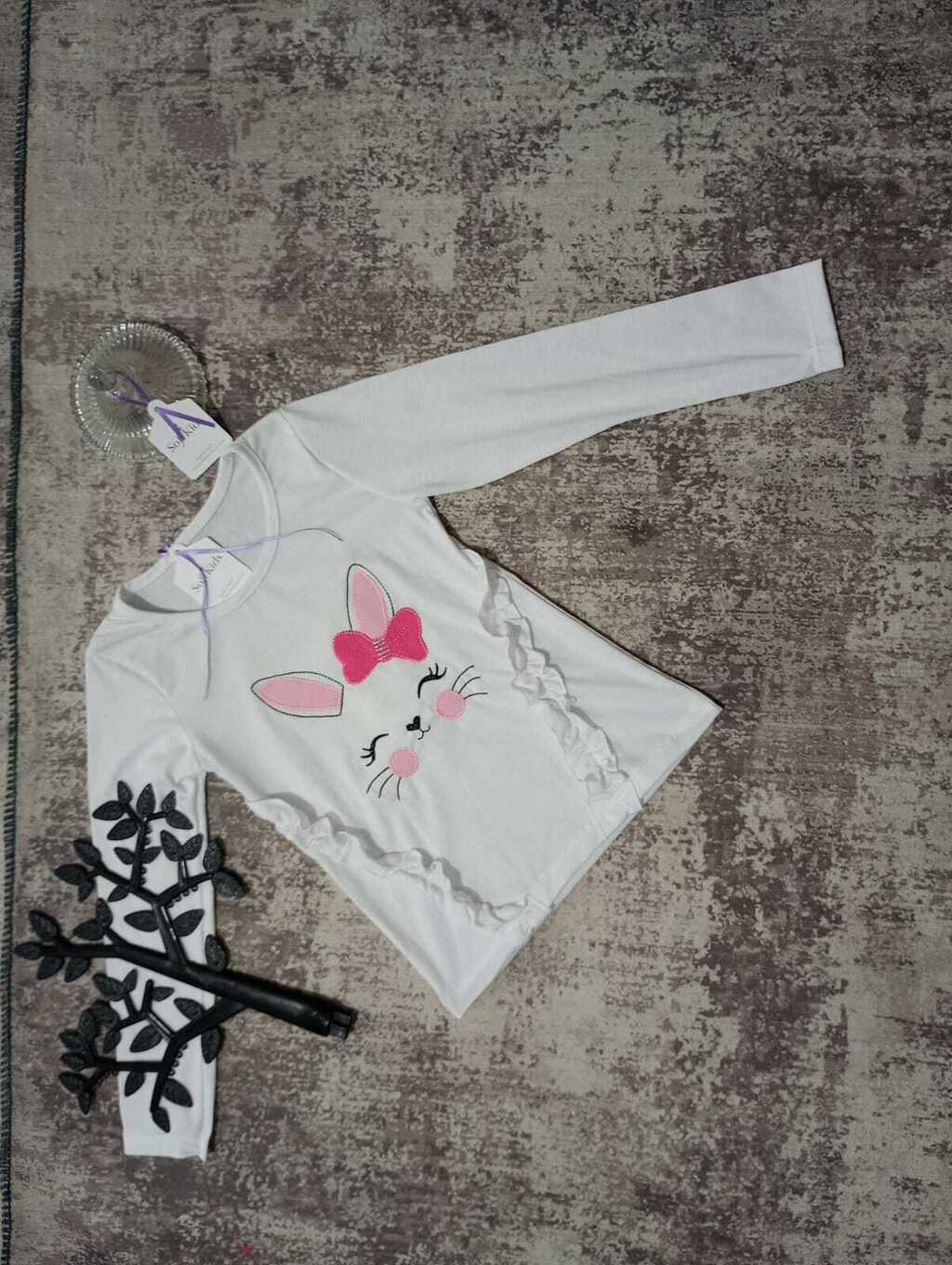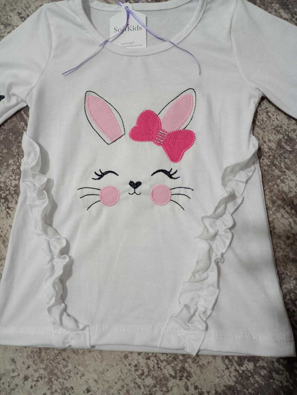 Diseño Único: La camiseta presenta encantadores detalles de gatita en el pecho, aportando un aire divertido y adorable a cualquier conjunto. Además, los voladitos en la parte de abajo le añaden un toque femenino y moderno.
